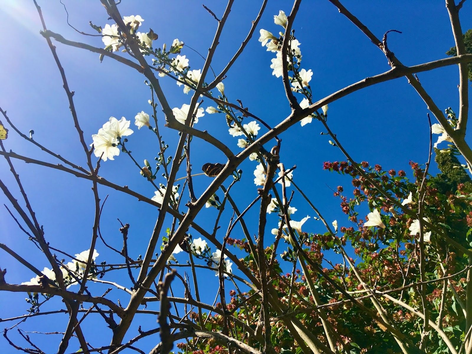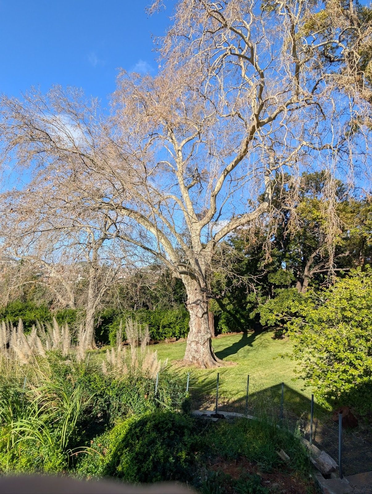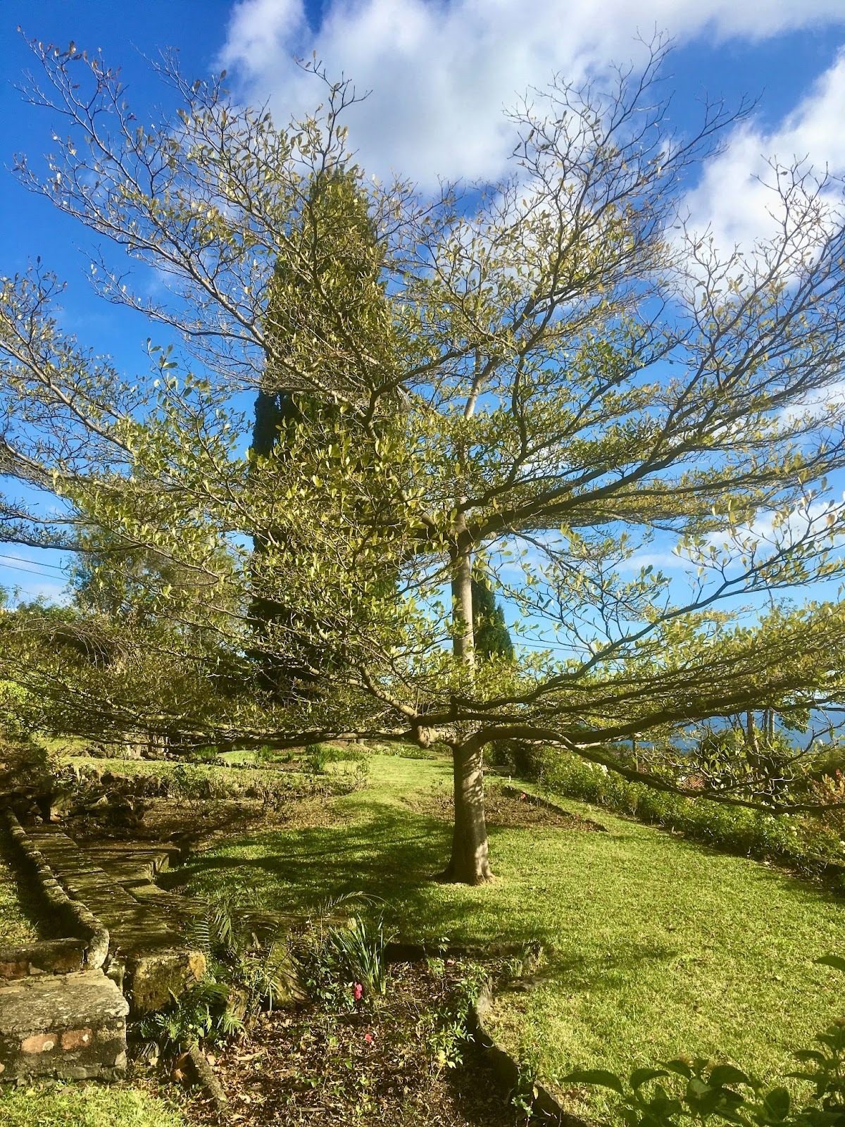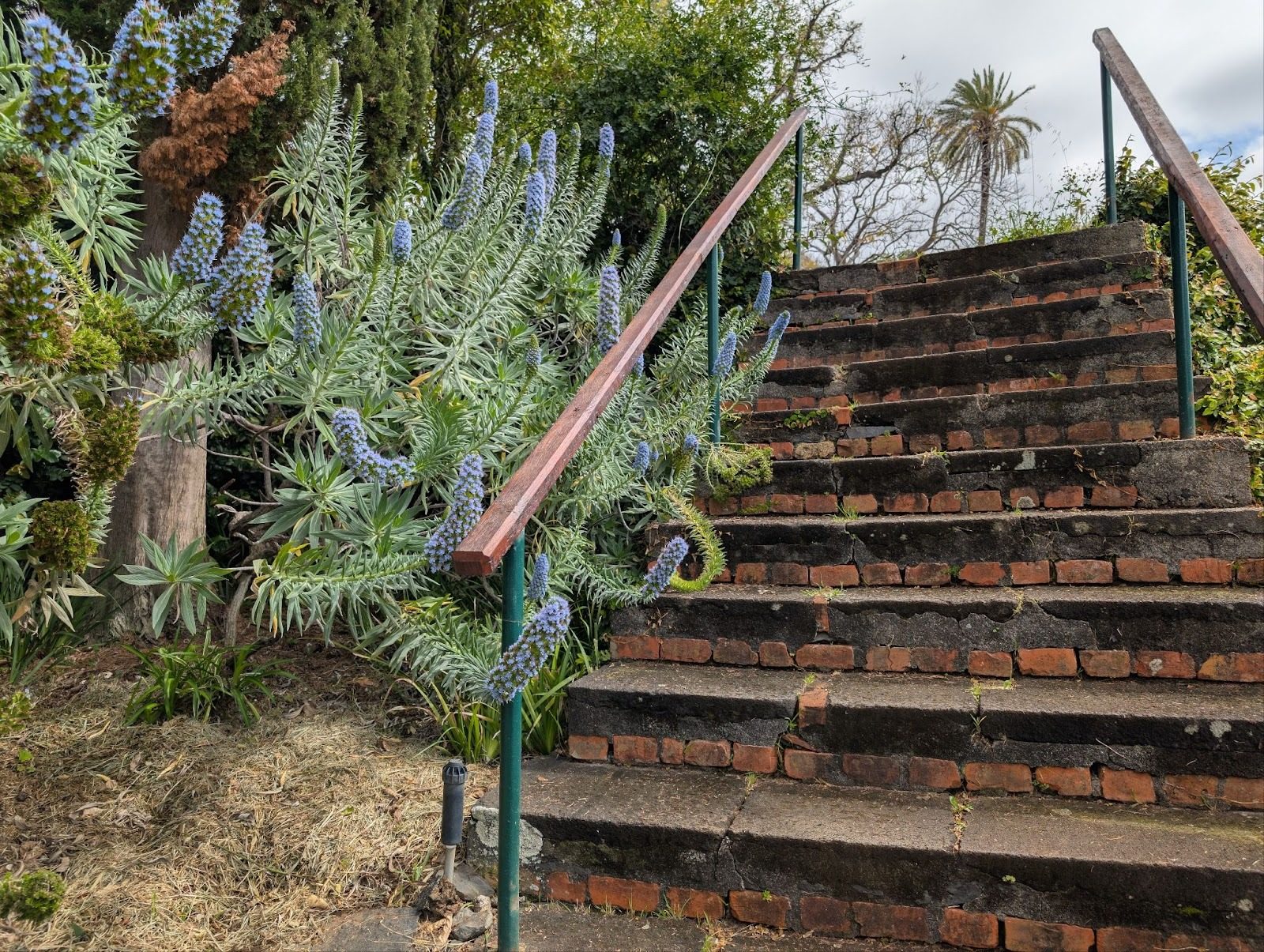 A parte inferior do jardim foi baptizada ‘Austrália’ por Theo Welsh, avó do proprietário, não apenas por estar localizada nos ‘confins’ da propriedade, mas também porque ela introduziu muitas plantas de sua terra natal, a Nova Zelândia, e da Austrália. Esta área foi totalmente devastada pelo incêndio de 2016, que atingiu o centro do Funchal. Apenas uma falange de estrelícias e o eucalipto gigante com aroma de limão resistiram praticamente ilesos. A área foi replantada num estilo mais natural e rebaptizada bosques de Te Whiti, em homenagem ao ativista Maori que foi pioneiro em técnicas de resistência não-violenta. A oeste, encontramos jovens Podocarpus Totora da Nova Zelândia, um cedro-do-atlântico, uma Schotia e diferentes Magnólias, bem como duas amoreiras que facilmente superaram todas as suas rivais. No lado oposto, fetos arbóreos endêmicos prosperam na sombra e os dragoeiros estão retornando. No final do caminho que desce da Janela de Colombo, chegamos ao Monumento de Simulanbuco – Estátua da Autodeterminação, da autoria do escultor madeirense Silvio Cró. Daqui, pode-se avistar o pomar de romãzeiras, abacateiros e caquis à sua esquerda, enquanto pela frente estende-se uma plantação de helicónias e proteias, com, claro, a cidade e o porto ao fundo.